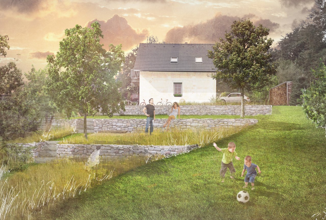 Máme fakt skvělé zákazníky. A tento byl obzvlášť. Akurát mu to trošku ujelo a začal dost "frčet" na starostlivosti o trávník. Studie z naší dílny vznikala pomalu ale důsledně a s pokorou pro stejně pokorného zákazníka. Zahrada, kde prioritou je prostě život na zahradě.