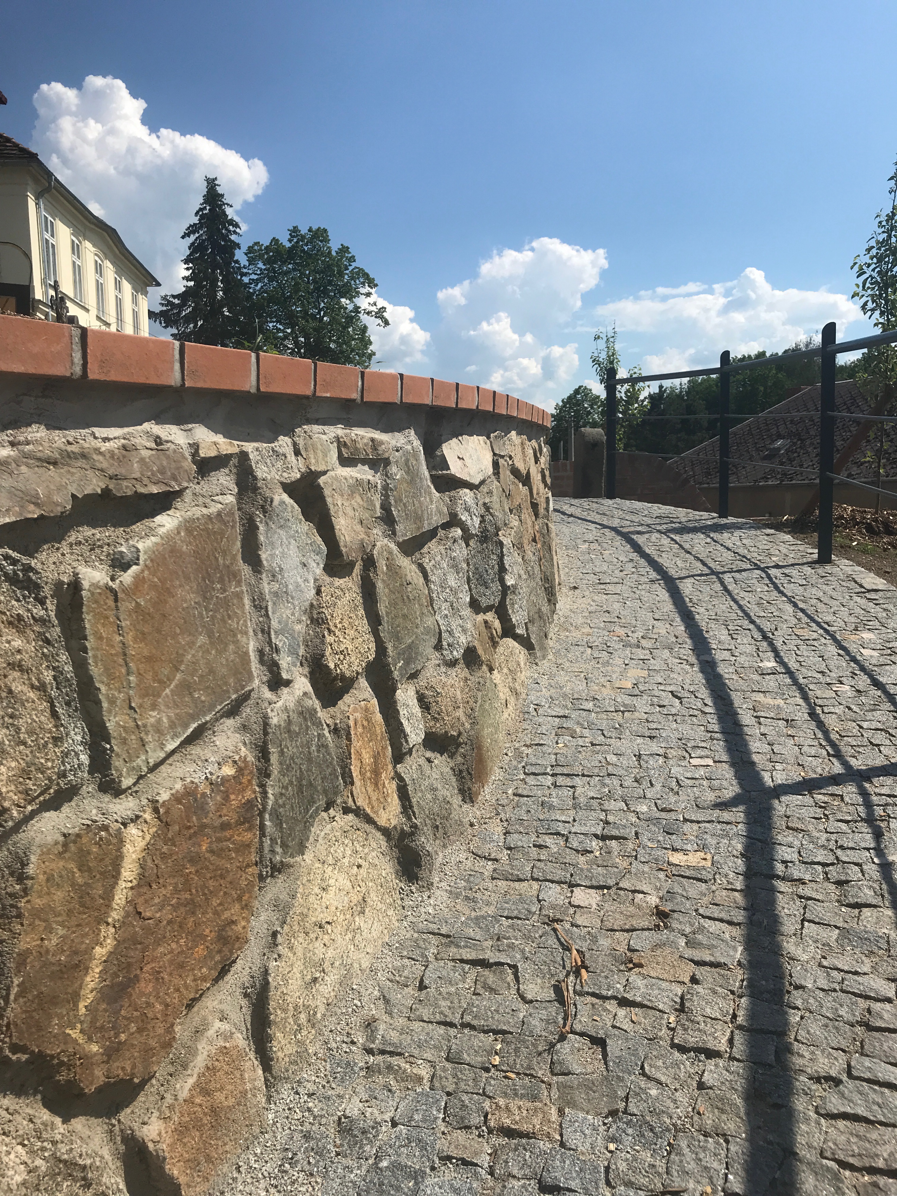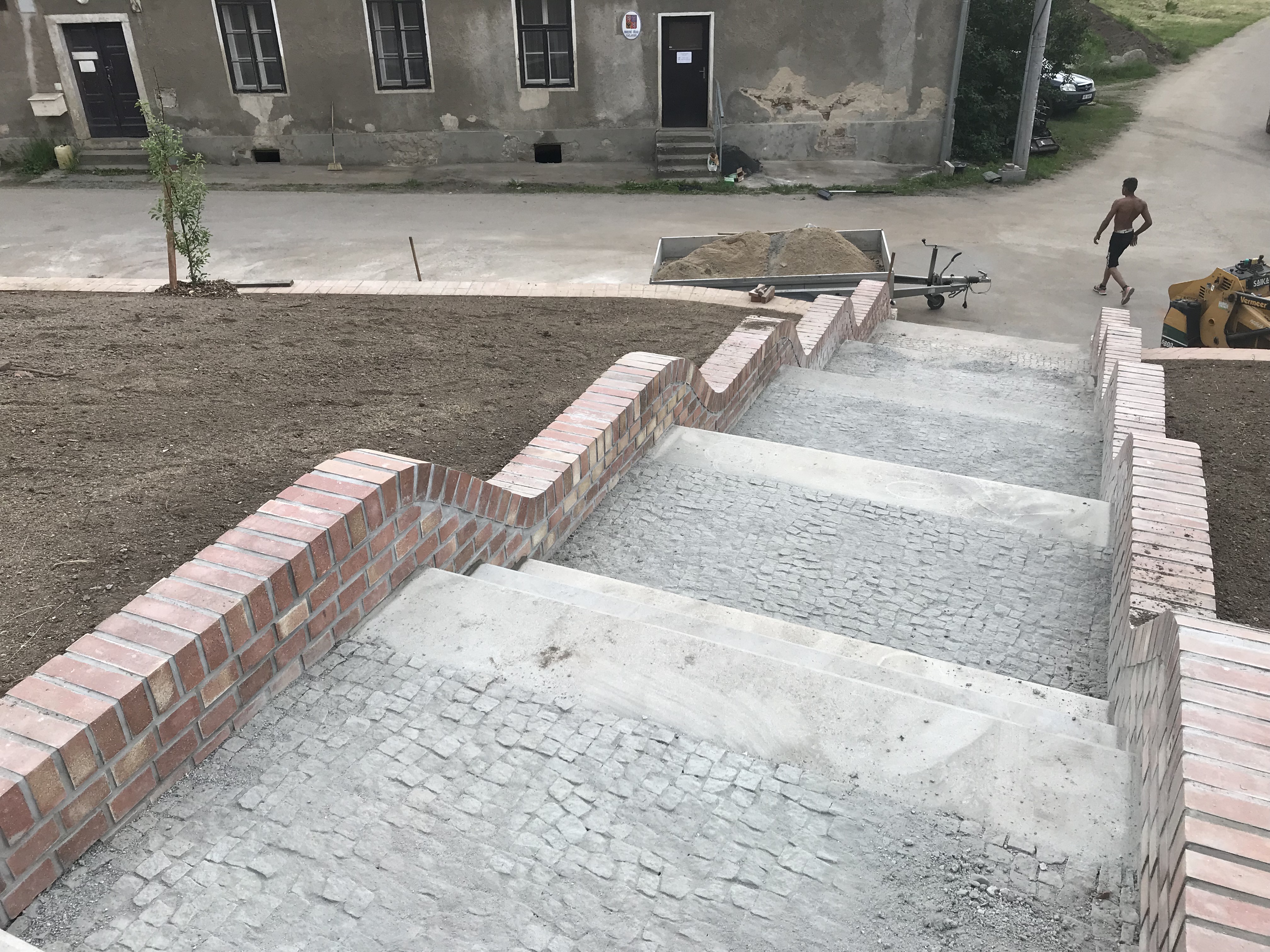 Zakázka vypadala dobře do momentu, kdy domluvená stavební firma nejen že nedodržela termín započetí prací, ale vůbec nepřišla. Tak jsme povolali anděly a udělali to díky nim. Zídky, které se měly opravit, se úplně rozebraly a udělaly znovu. Schody, které se měly také