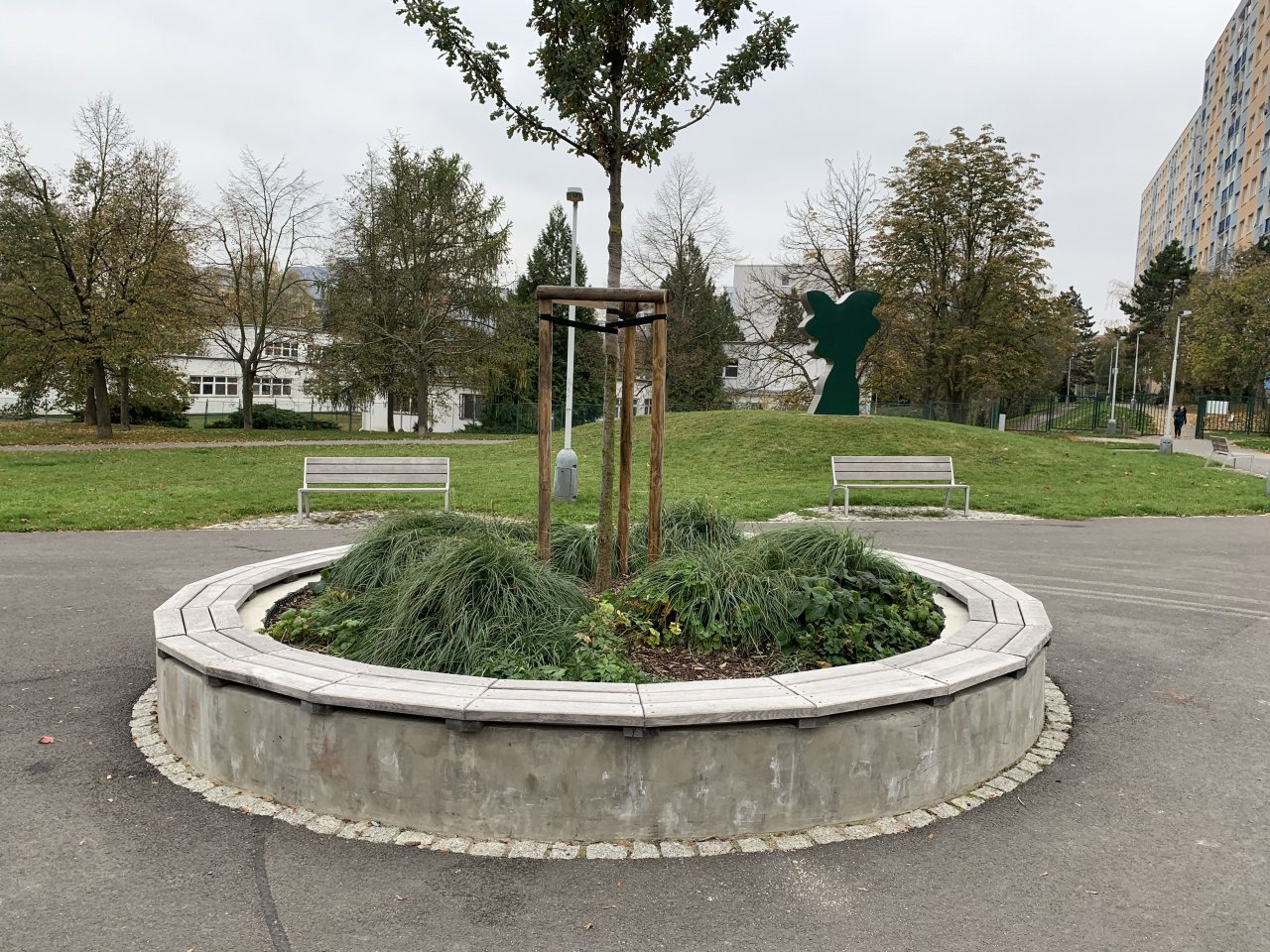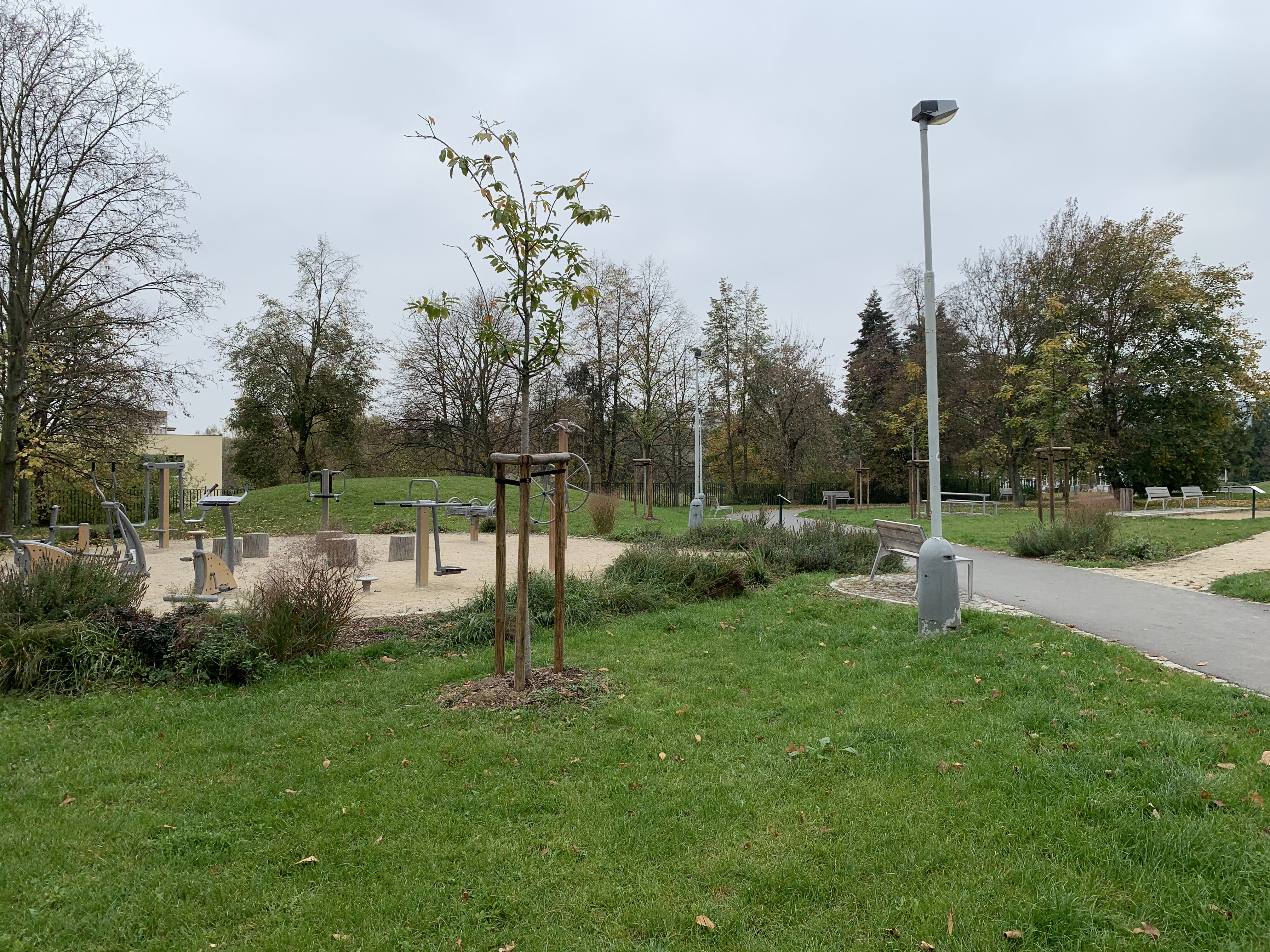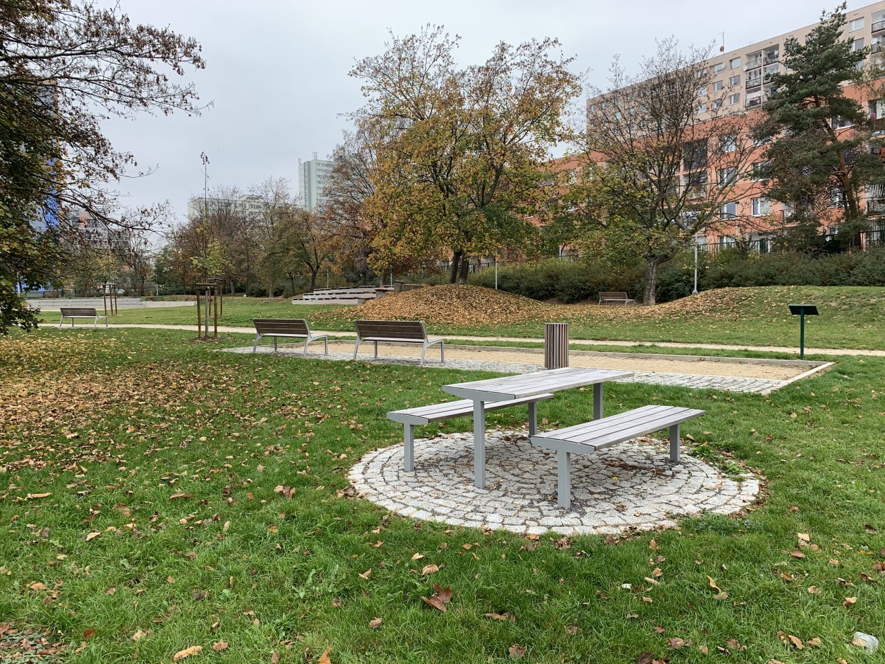 Vlastní architektonické řešení navazuje na stávající a osvědčené uspořádání v parku, které je limitováno především tvarem plochy a terénu na daném území. Z plochy budou odstraněny ty prvky drobné architektury a vybavení parku, které se neosvědčily nebo dosloužily.