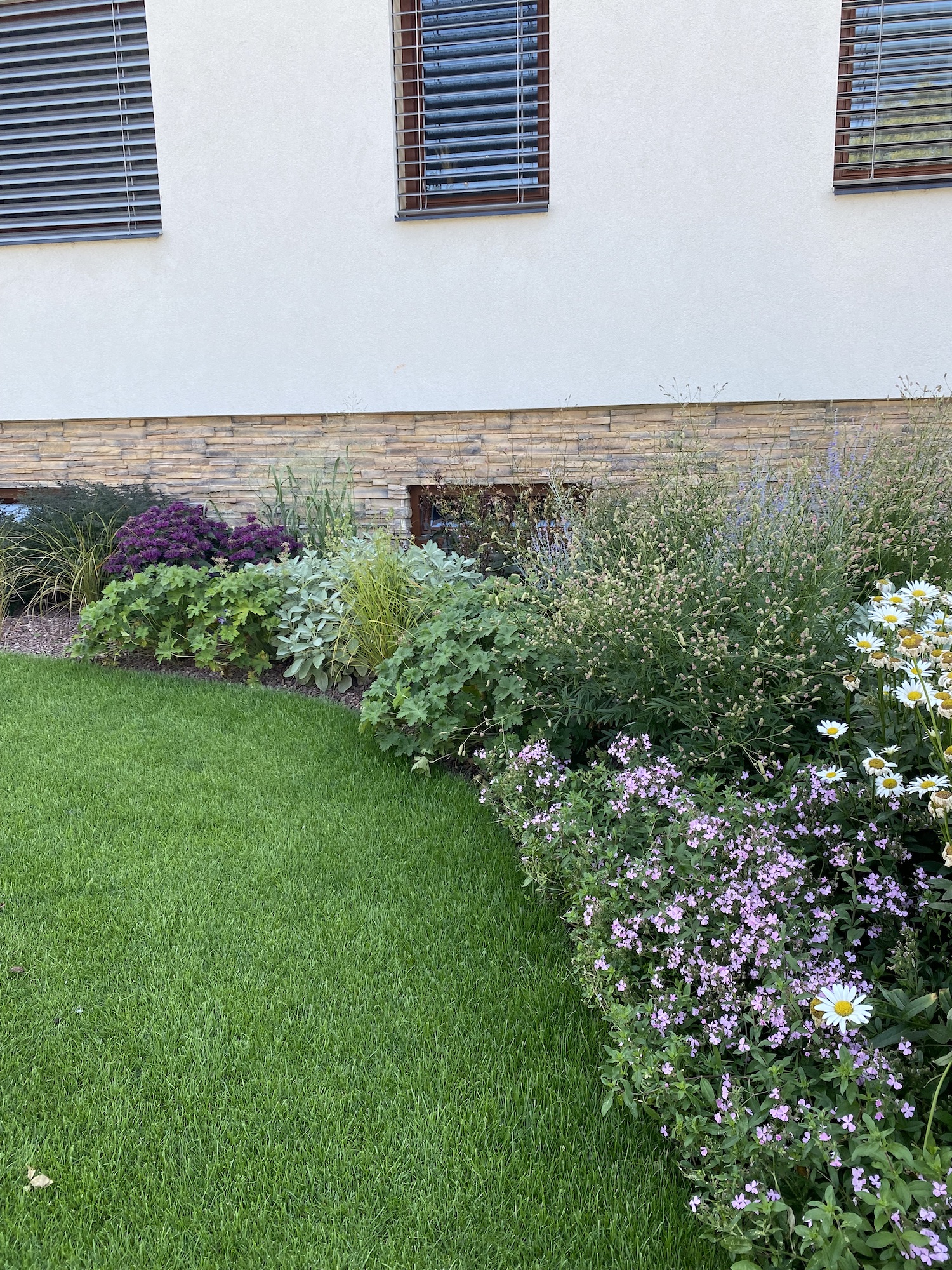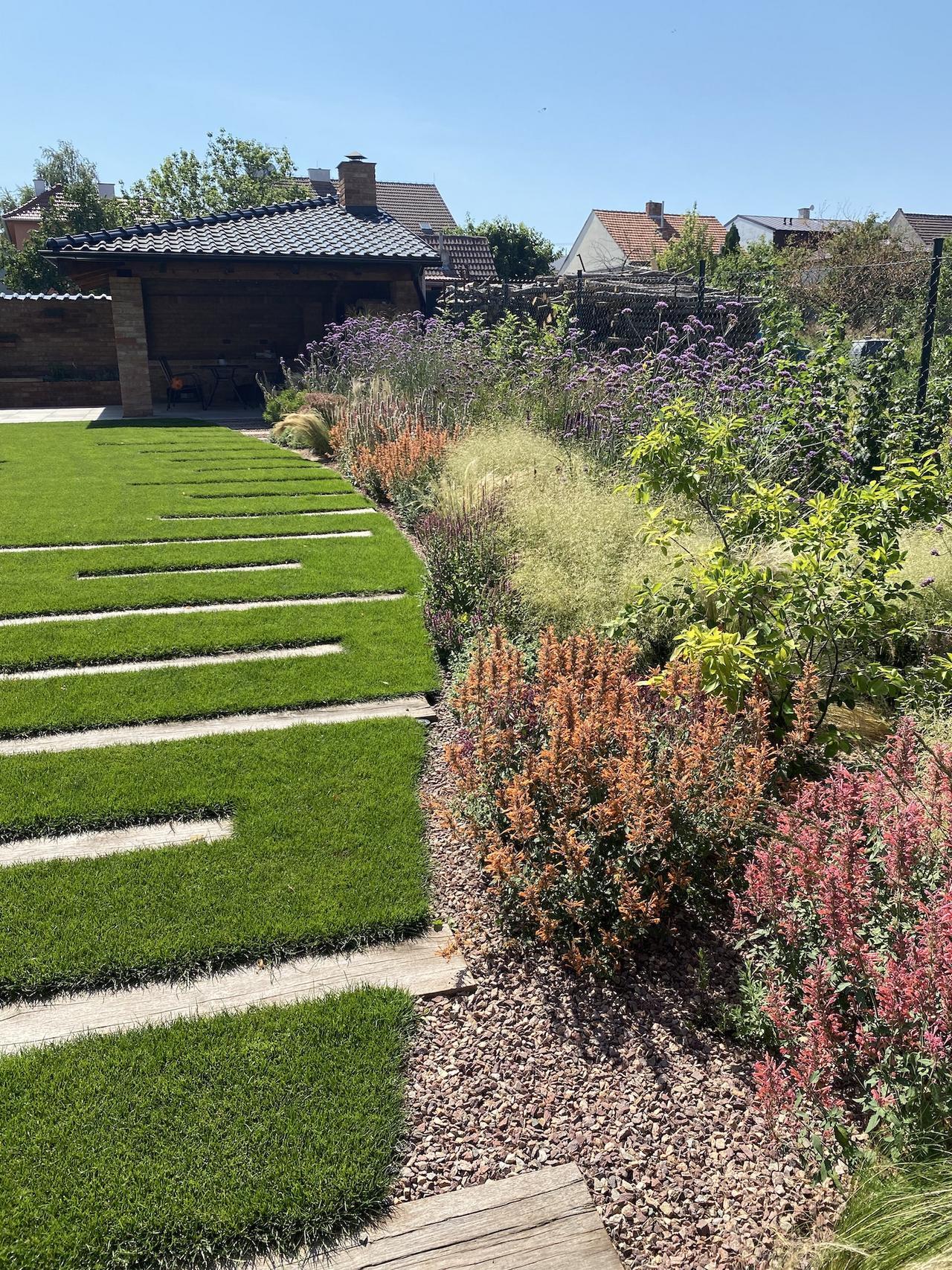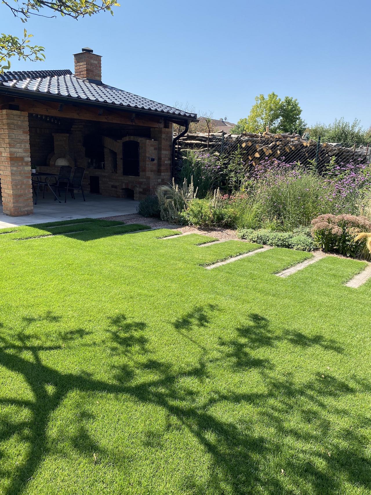 Máme fakt skvělé zákazníky. A tento byl obzvlášť. Akurát mu to trošku ujelo a začal dost "frčet" na starostlivosti o trávník. Studie z naší dílny vznikala pomalu ale důsledně a s pokorou pro stejně pokorného zákazníka. Zahrada, kde prioritou je prostě život na zahradě.