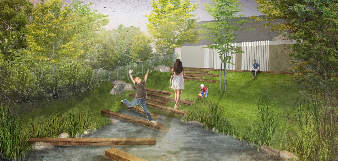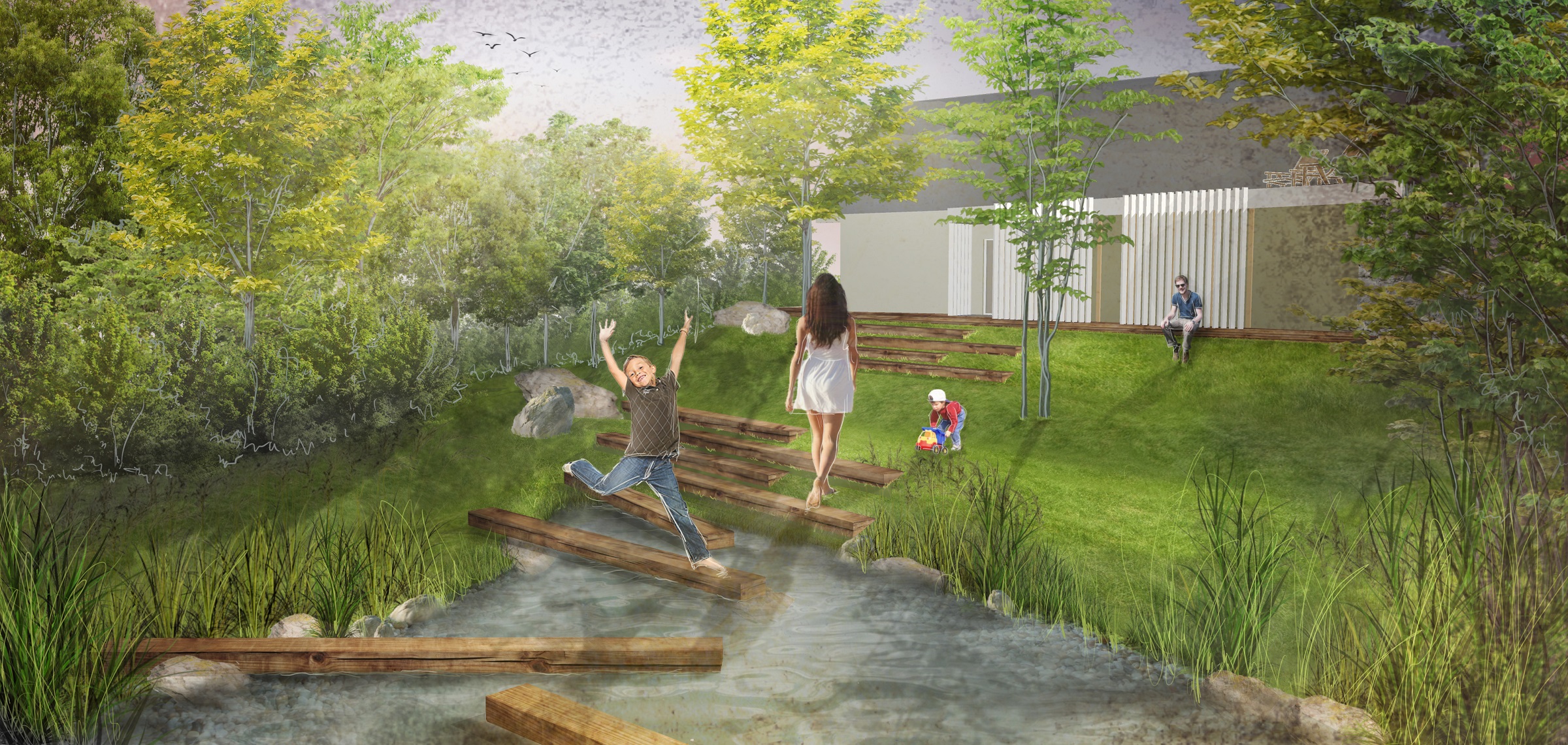 Na podzim roku 2017 proběhla 1. etapa realizace, při které byly odstraněny neperspektivní dřeviny a naopak dosazeny dřeviny, které budou za několik let tvořit jádro nové zahrady.